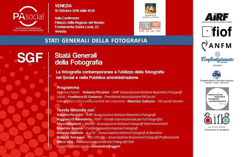Si terrà a Venezia giovedì 18 ottobre 2018, dalle ore 9:30 alle 13:30, presso la Sala Conferenze Palazzo della Regione del Veneto, la quarta edizione degli Stati Generali della Nuova Comunicazione Pubblica organizzata dall’associazione nazionale per la nuova comunicazione PA Social. Un evento che vanta il Patrocinio della Regione del Veneto e la collaborazione di Digital Meet e AIRF – Associazione Italiana Reporter Fotografi.